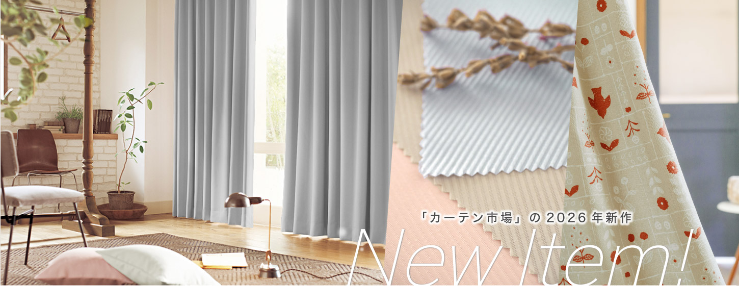 2026年 カーテン通販専用販売サイト「カーテン市場」の新作オーダーカーテンです。織り方にこだわったカーテンから、新作のレースカーテンまで豊富にラインナップしました。レースカーテンは人気の機能を付いたものが豊富に出そろいました。