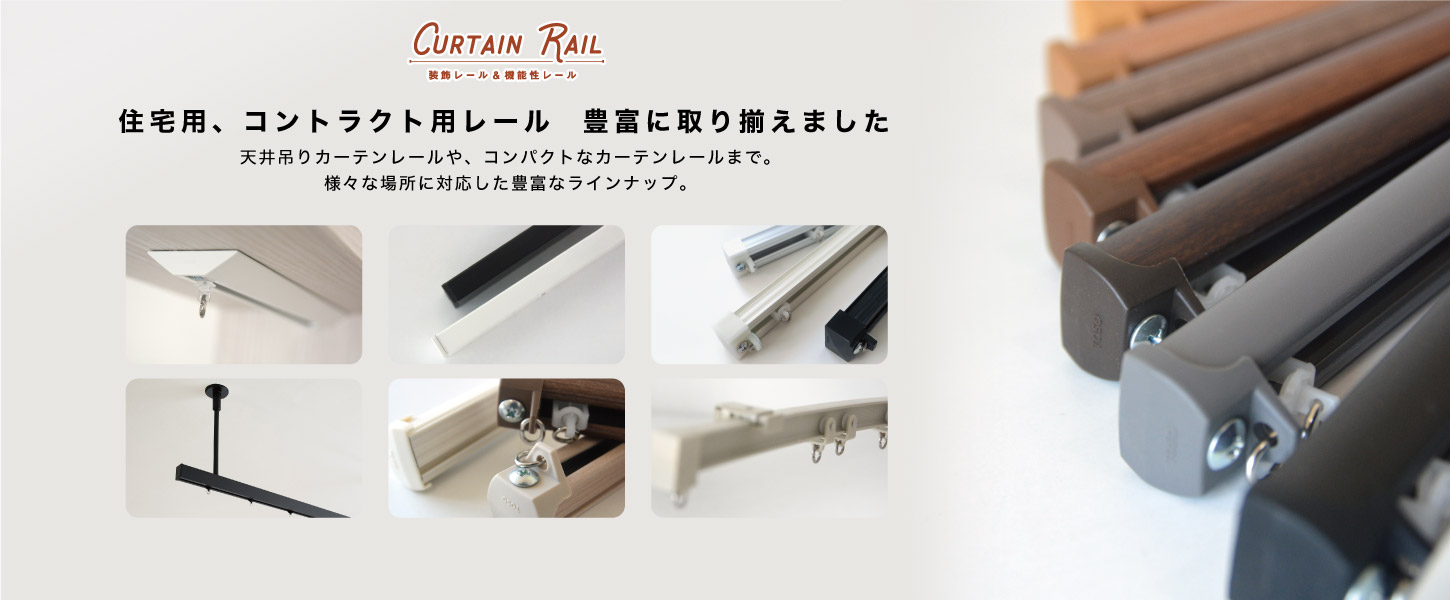 安心の国内一流メーカー製造、取り付けも安心安全な装飾カーテンレールと機能性カーテンレールもバリエーションが豊富になりました。補修部材も取り揃え、長く安心して使用して頂けるカーテンレールです。1㎝単位でのカットサービスも承っています。