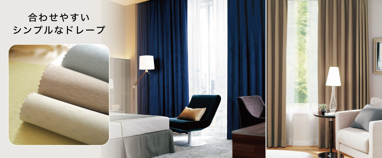 ホテル・宿泊施設の、様々なお部屋に合わせやすいシンプルなドレープ