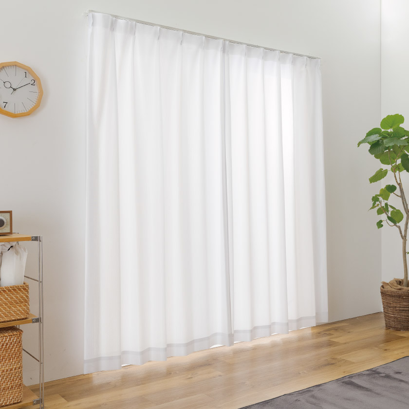 リーズナブルな価格設定が人気のレースカーテンです。ミラーレース機能と遮熱機能、2つの人気の機能が付いています。特徴である遮熱機能は、夏は外からの熱を21%カットし、冬は外からの冷気を12.9%カットしてくれます(遮熱機能の詳しくはこちら☞)。冷暖房の効率も高まる効果があるので、省エネ効果も期待できます。