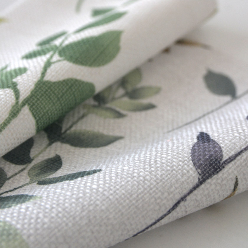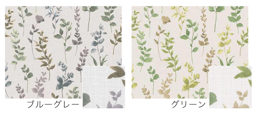 水彩絵の具を使ったようなタッチで描かれたリーフ柄のカーテンです。