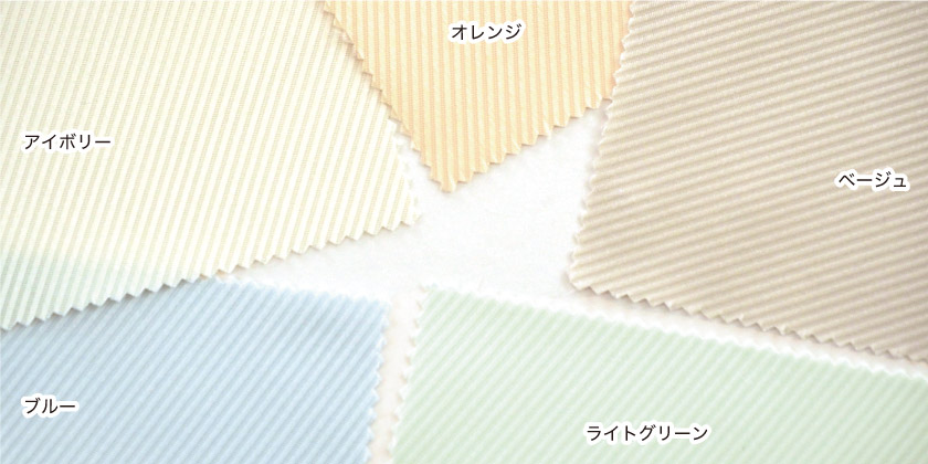 カラーはアイボリー、オレンジ、ブルー、ライトグリーン、ベージュ、ピンク、パープル、グリーン、グレーの9色展開です。