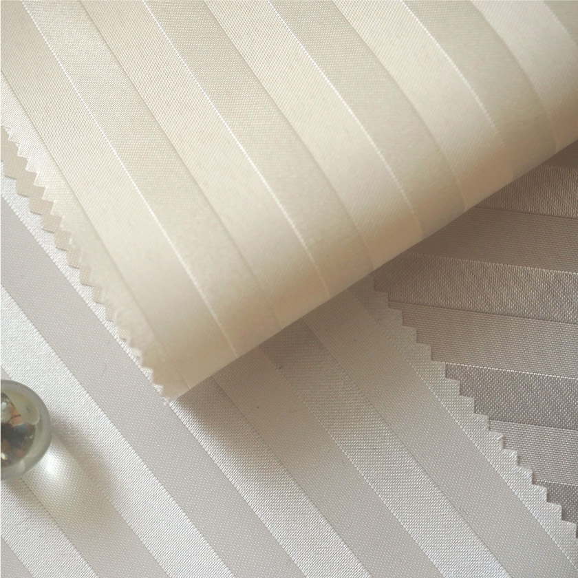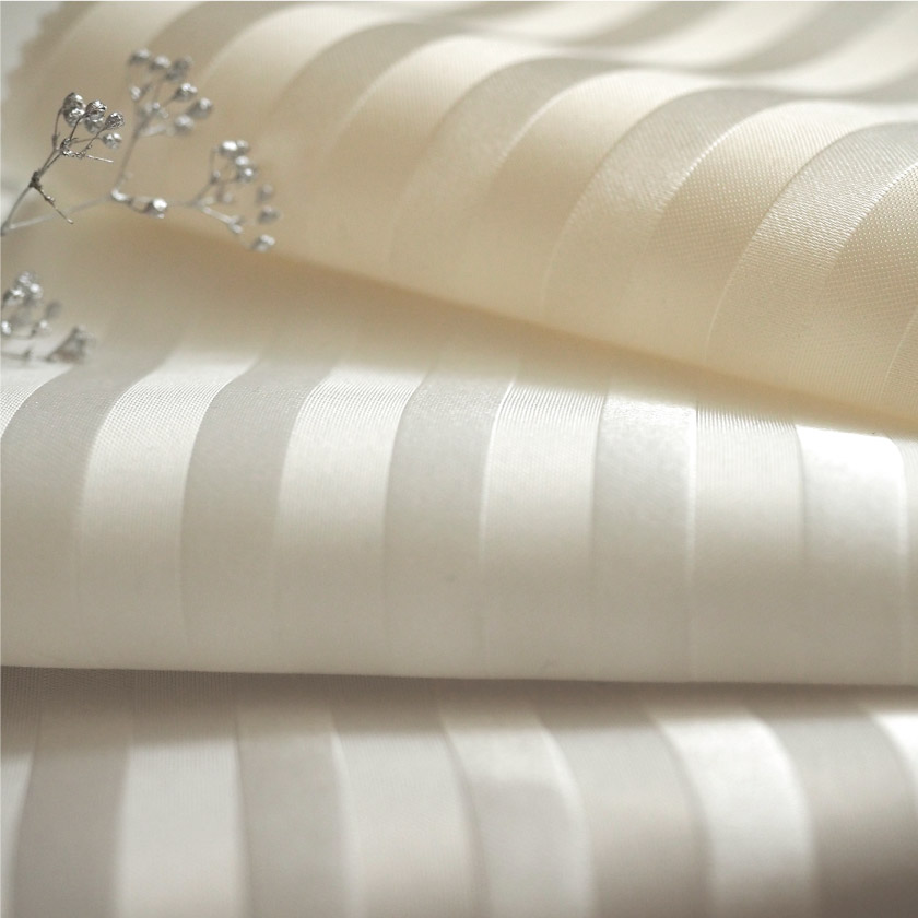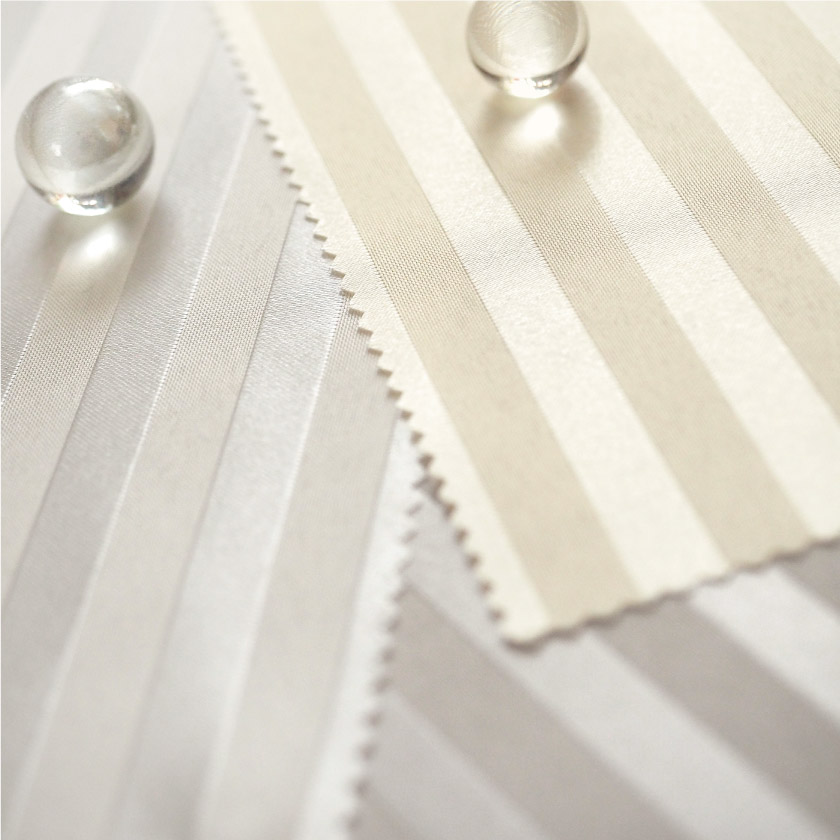 光沢のあるストライプの入った、モダンなシャワーカーテン。