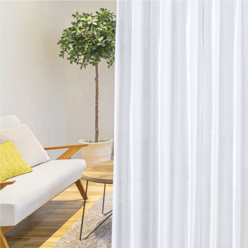 遮熱率25%以上、紫外線遮蔽率70%以上のレースです。さらに、繊維に付着した汚れが洗濯で落ちやすい「防汚機能」、光を拡散し室内を明るく保つ「光拡散機能」、色褪せを抑える「耐光性」がついた高機能なレースです。