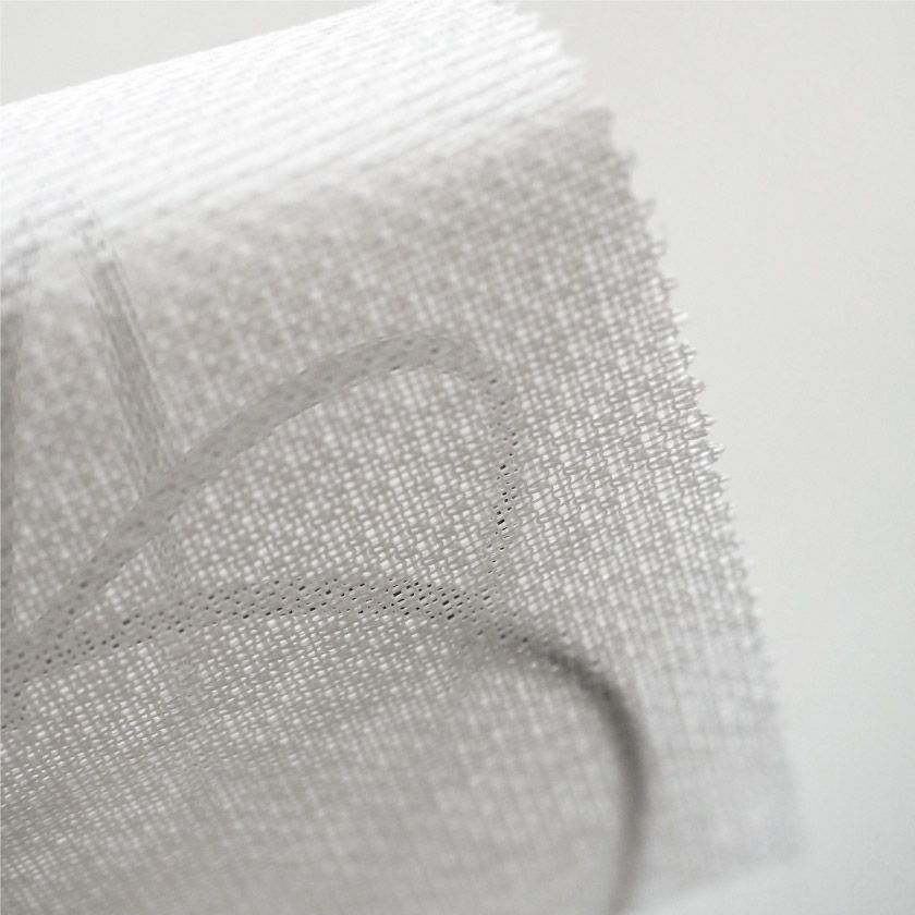 生地の透け感と、表面と裏面の比較画像です。表面はさりげない光沢のある生地です。裏面はミラーレース特有の光沢があります。