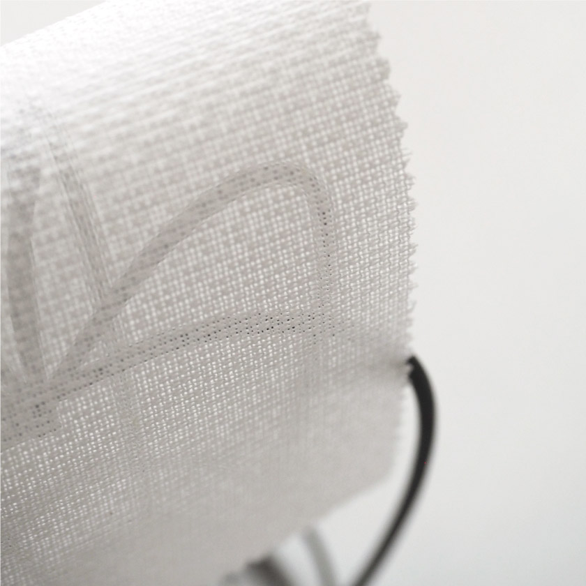 遮熱率25%以上、紫外線遮蔽率70%以上のレースです。長時間日差しを浴びても色褪せにくい「耐光性」もついています。生地に多少凹凸があり、優しい表情です。