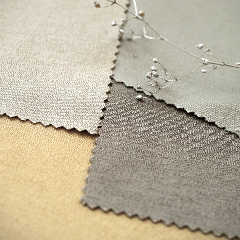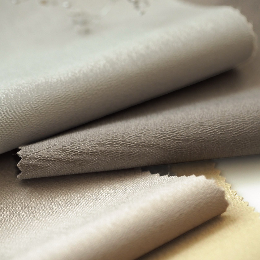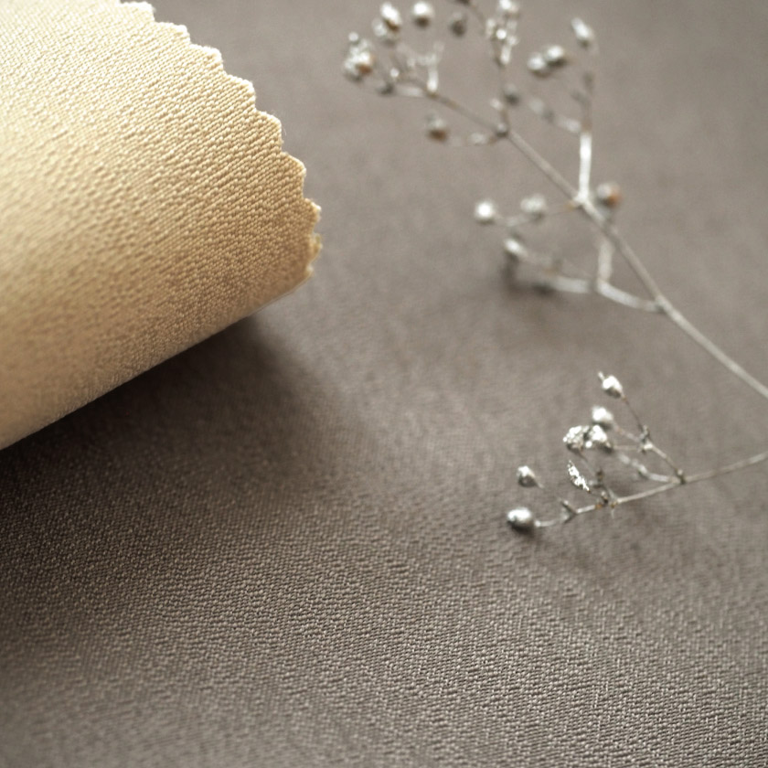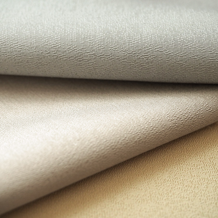 控えめな光沢感のある生地です。薄手で、ツヤのあるサラッとした手触りです。ご自宅はもちろん、サロンなどにもおすすめな、上品な無地カーテンです。