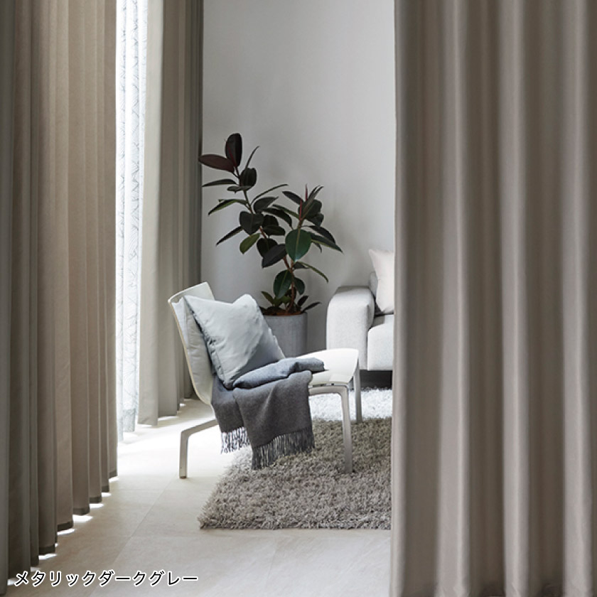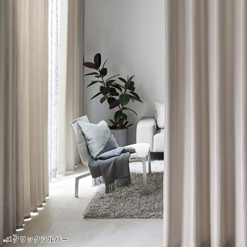 メタリックな表情が魅力のカーテン。抑えた光沢感がモダンなインテリアによく合います。