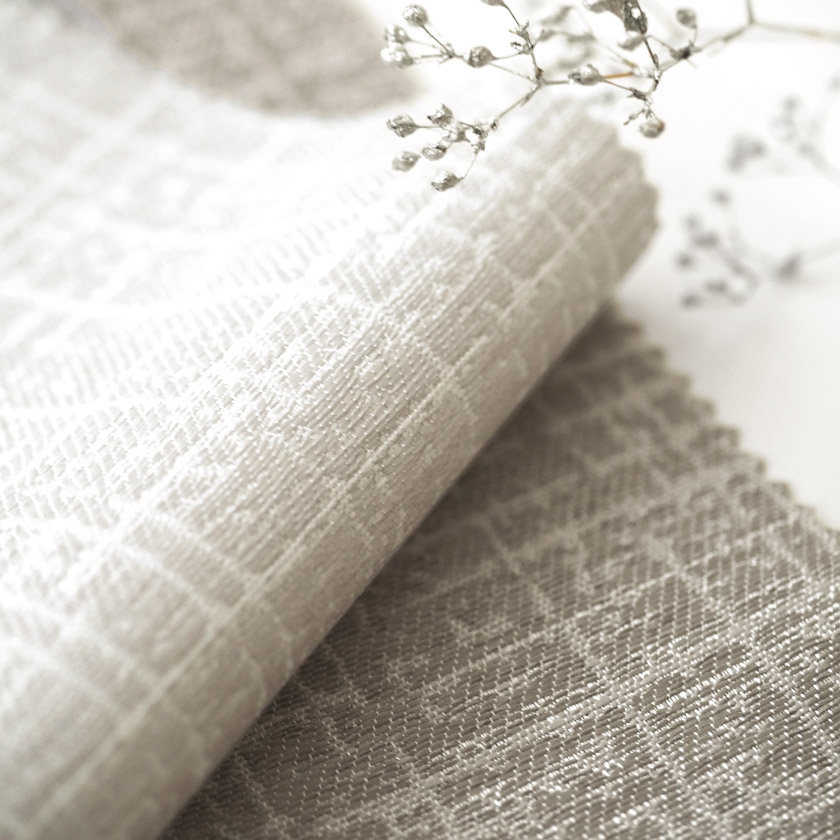 上品な光沢のある生地に、柄を織り込んだカーテンです。