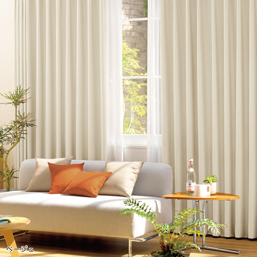ざっくりとした織り目と、明るい色合いのカーテン。生地は薄手で軽やか。どんなお部屋にも合わせやすい生地です。無地がいいけれど、少しあたたかみのあるものも欲しい、という方におすすめしたい、ナチュラルなカーテンです。