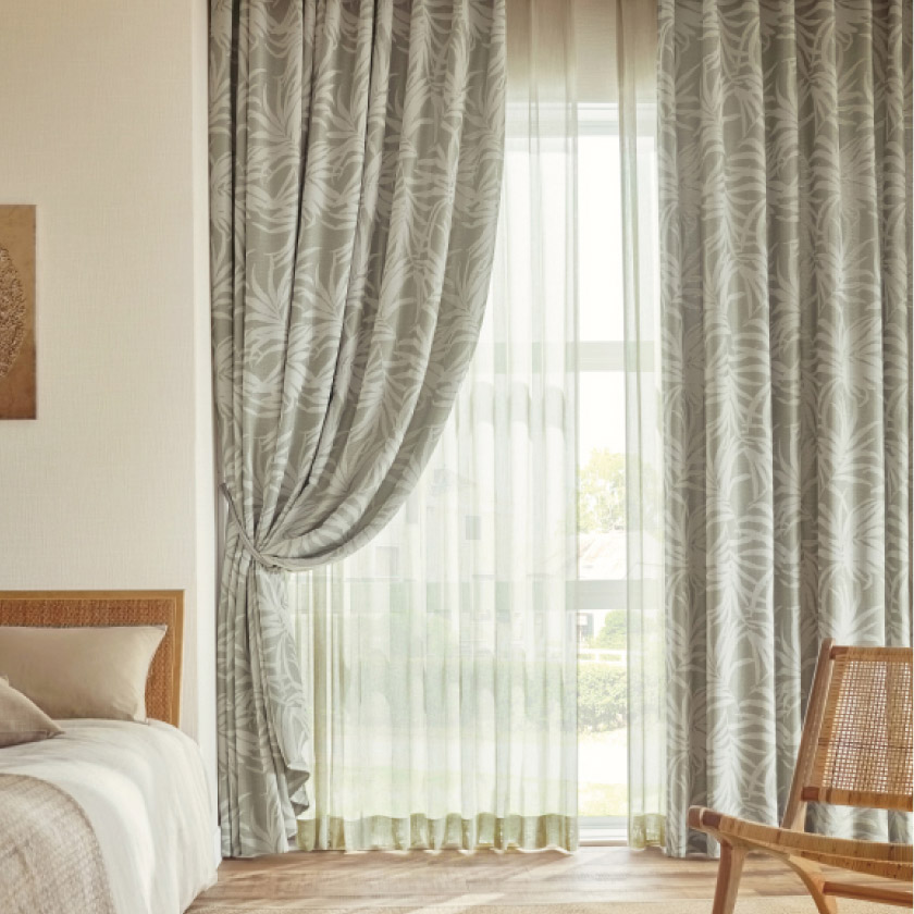 ボタニカル柄をふっくらと表現したカーテン。