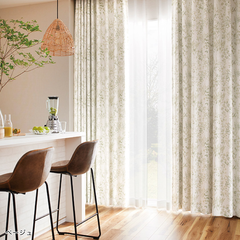 水彩タッチの草花をプリントした、ナチュラルなカーテンです。