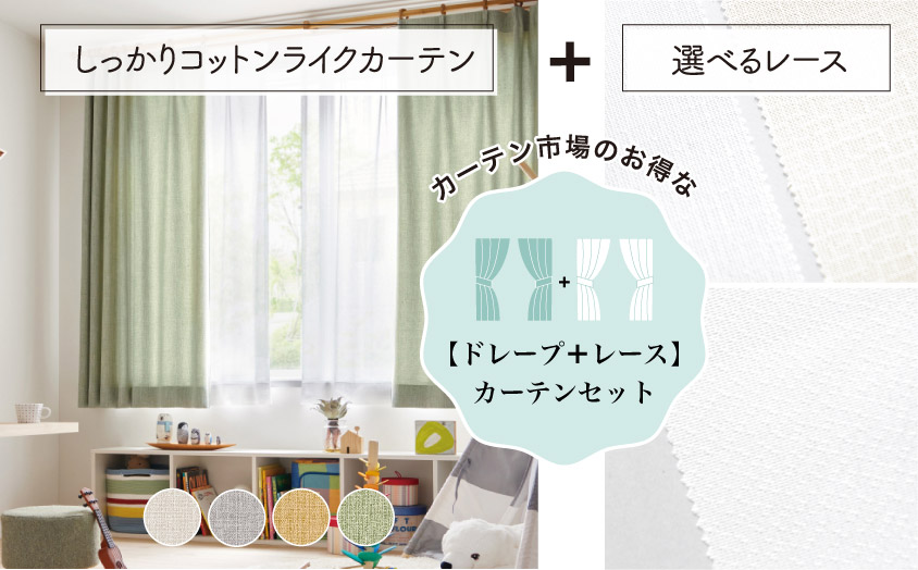 『しっかりコットンライクカーテン+おすすめレース』セット