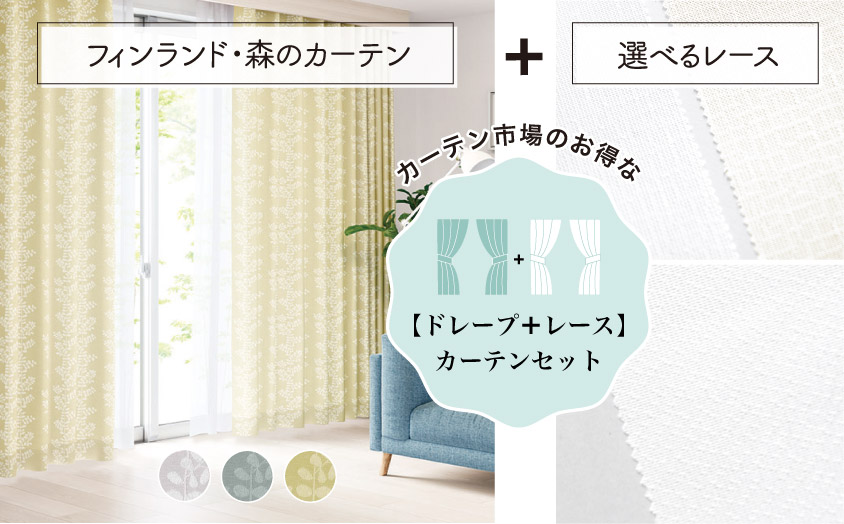 ドレープカーテンと、オススメのレースカーテンがセットになったオーダーカーテンです。1cm単位でサイズオーダーできるので、窓にピッタリとサイズが合ったドレープ+レースをセットでお届けします。タッセルとアジャスターフックがセットになっています。日本国内の縫製場で丁寧に製作します。