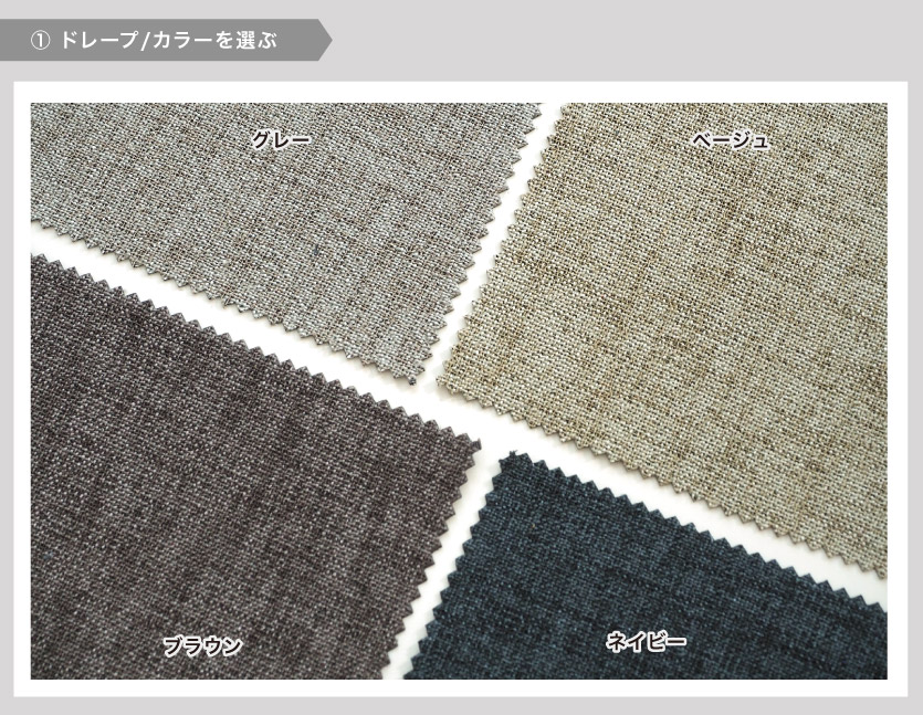 ドレープカーテンと、オススメのレースカーテンがセットになったオーダーカーテンです。1cm単位でサイズオーダーできるので、窓にピッタリとサイズが合ったドレープ+レースをセットでお届けします。タッセルとアジャスターフックがセットになっています。日本国内の縫製場で丁寧に製作します。