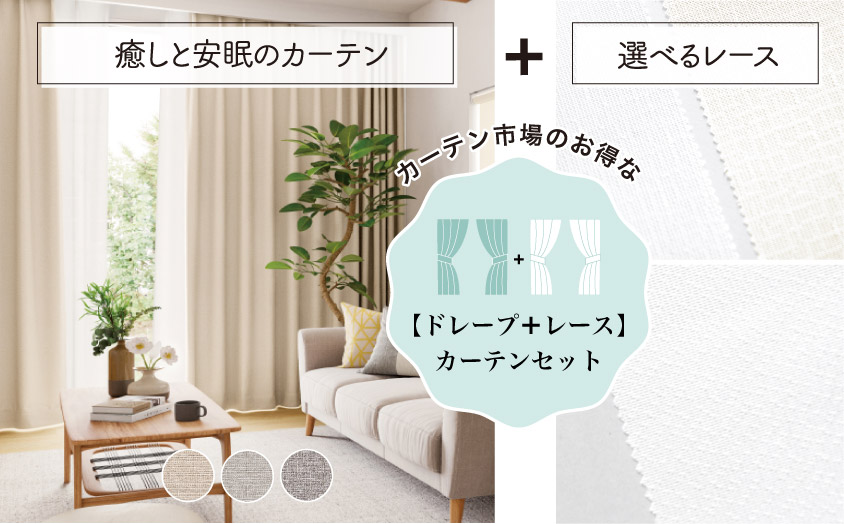 『1級遮光ドレープ【癒しと安眠のカーテン】+おすすめレース』セット